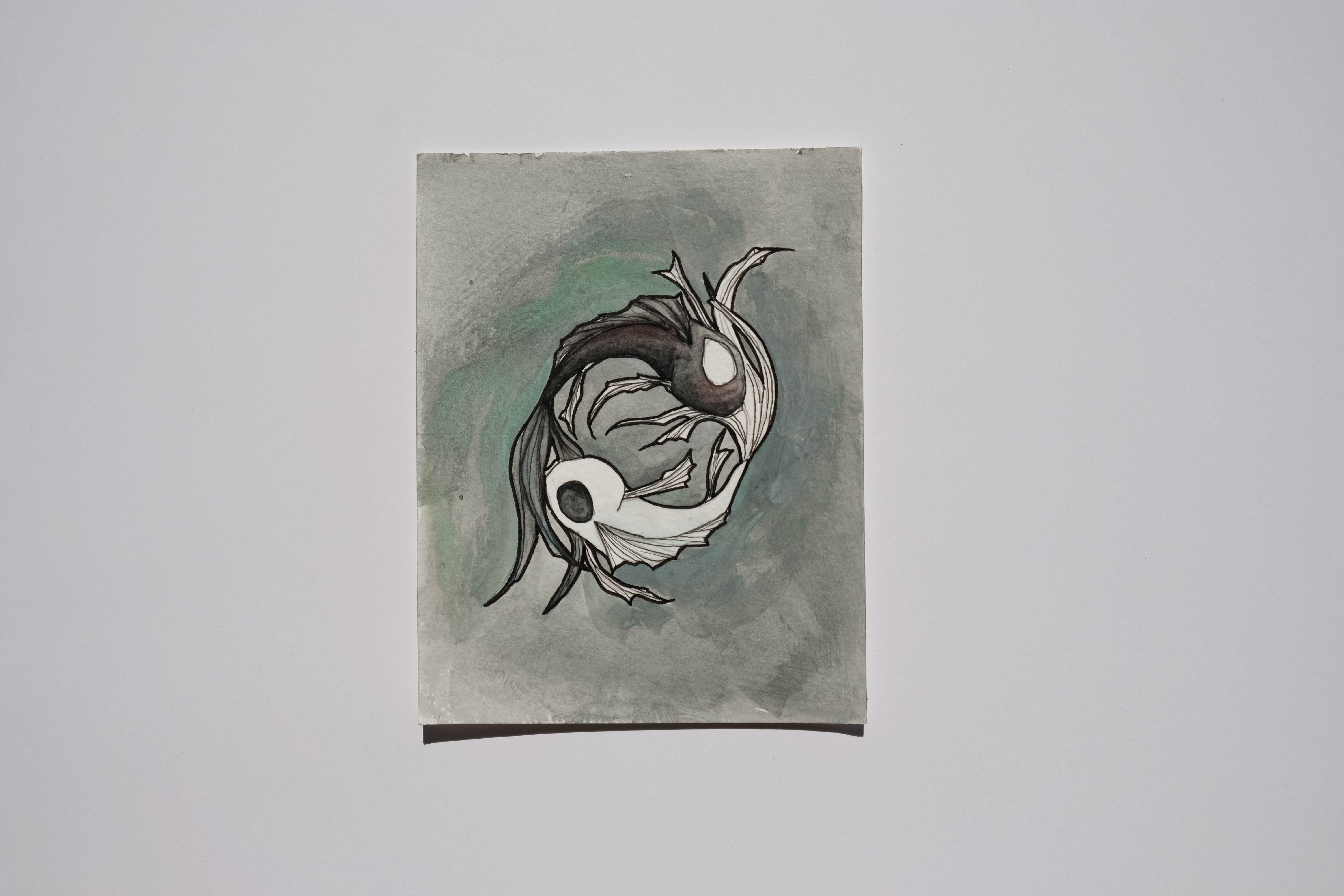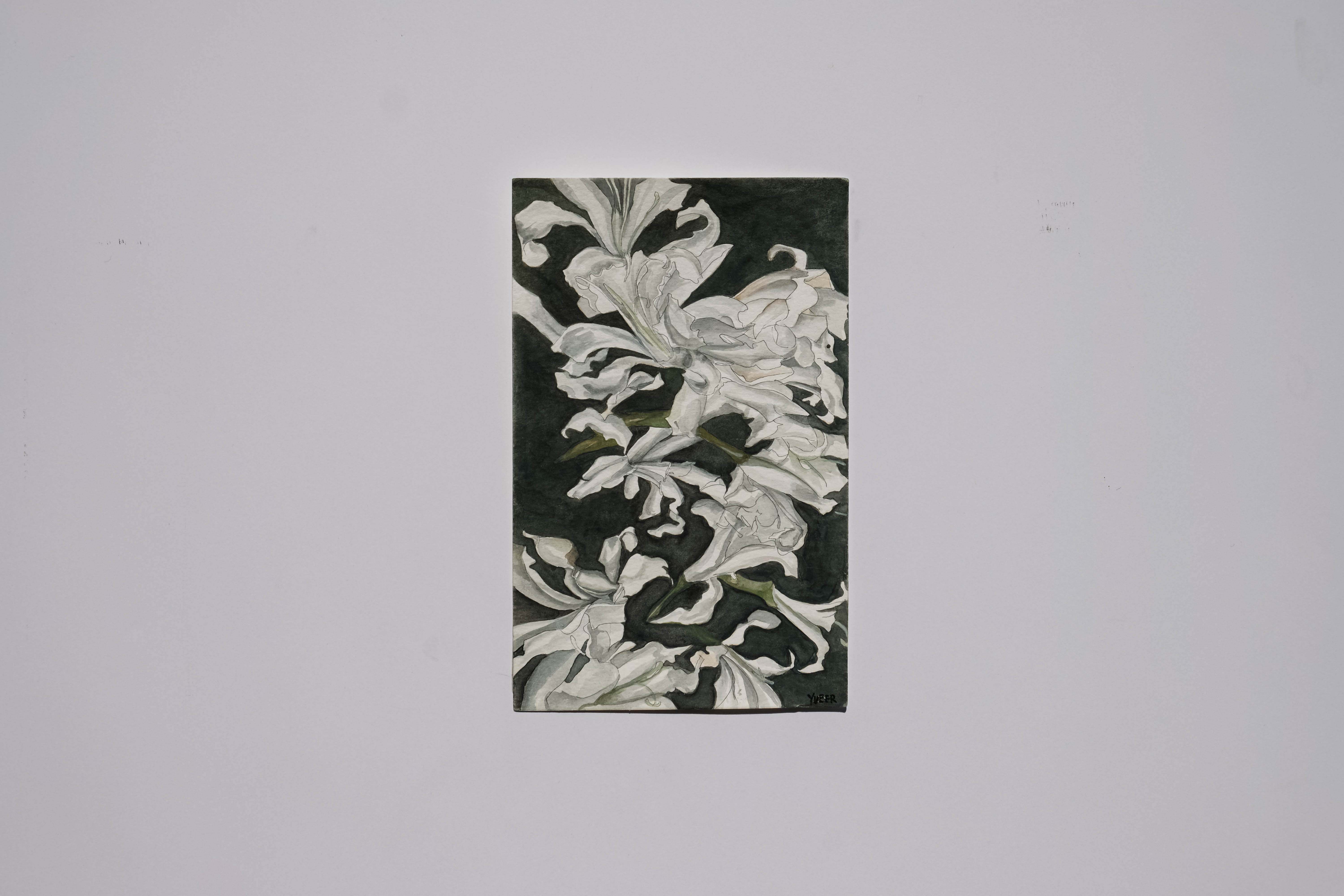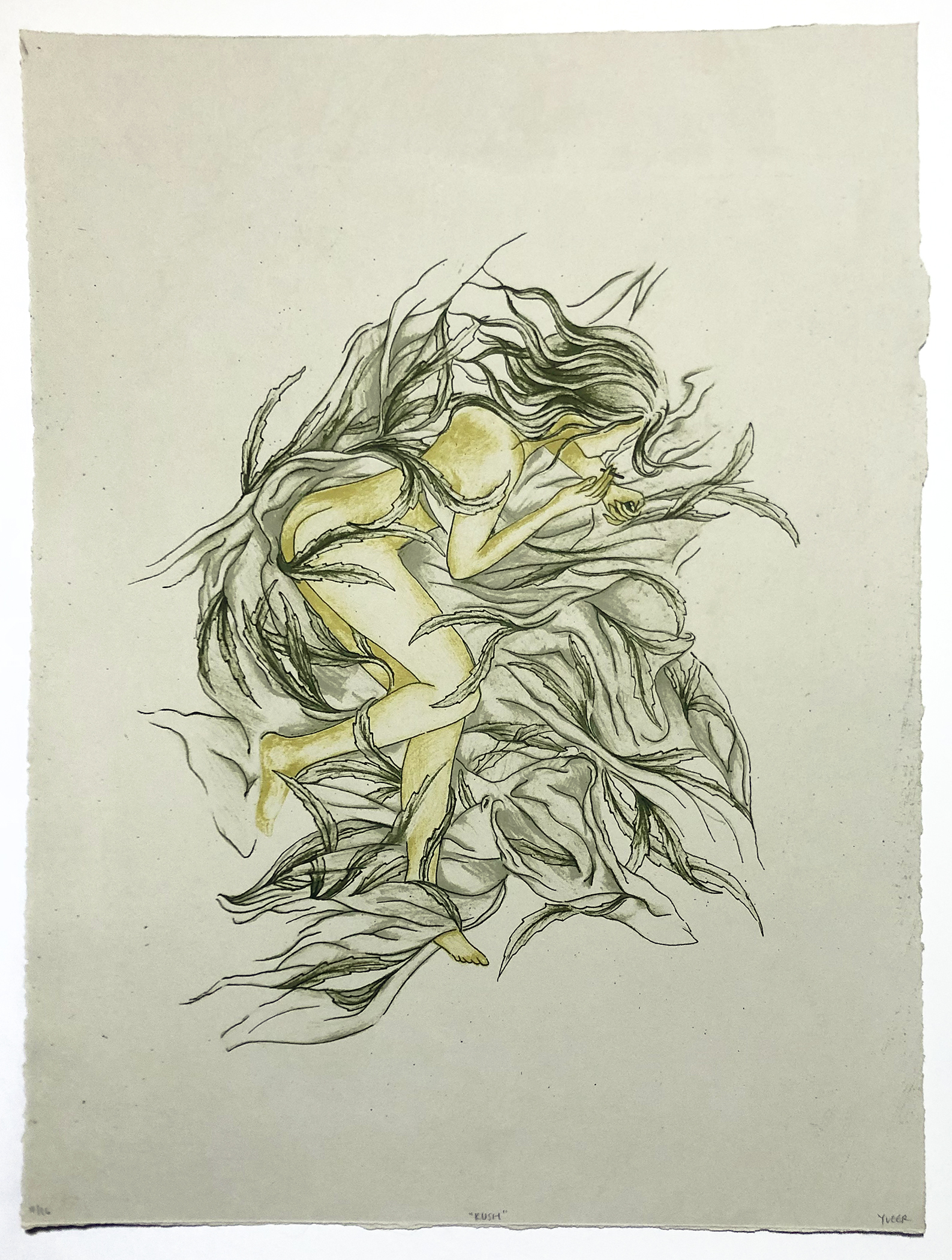 “kush” is inspired by plant and drapery. the leaves can be interpreted as wrapping and protecting the figure; or binding and entangling her